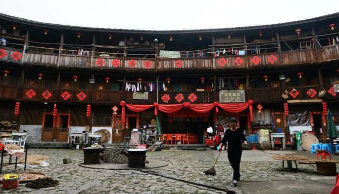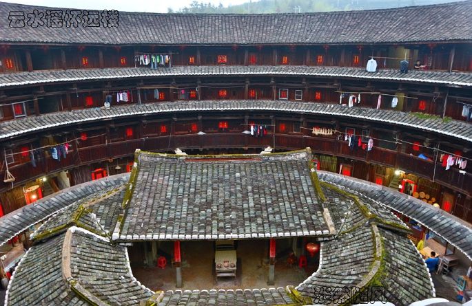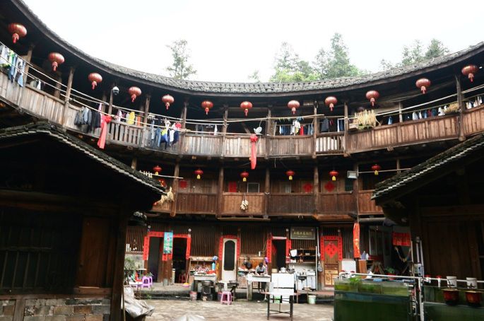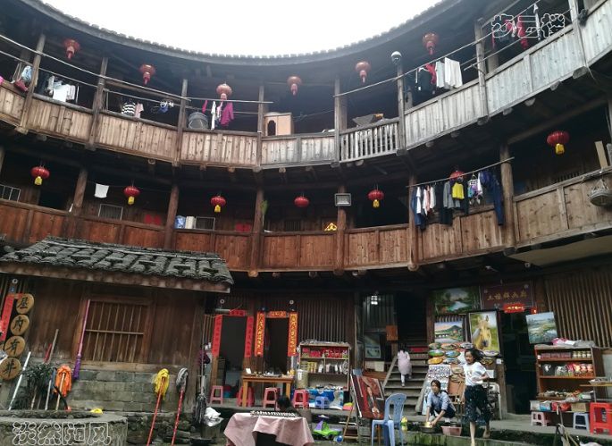 虽然土楼的知名度越来越高,来这里的游客也越来越多,但是这似乎这里的人们的生活丝毫不受影响,人们仍然居住在土楼内,对于我们这些游客,他们早已习以为常,视若无睹,除了一楼的住户会出售些土楼土特产,土楼客家人的生活仍然延续着,数十户、几百人同住一楼,聚族而居,和睦相处。