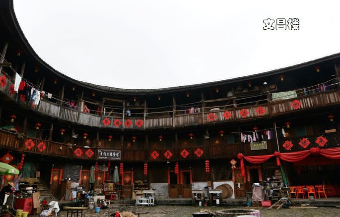 最后一座文昌楼,建于1966年,是一座椭圆形楼,三层,每层有32间房间,整个面积很大,本想拍个全景,奈何拍照设备限制,只能拍两张个局布。