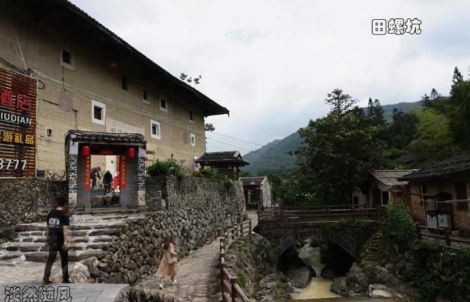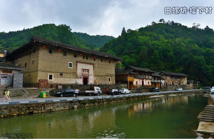 塔下村是个很小的村子,村中间一条小溪悠悠地流淌着,沿河土楼依山傍水,村民在这方乐土上生息延绵。