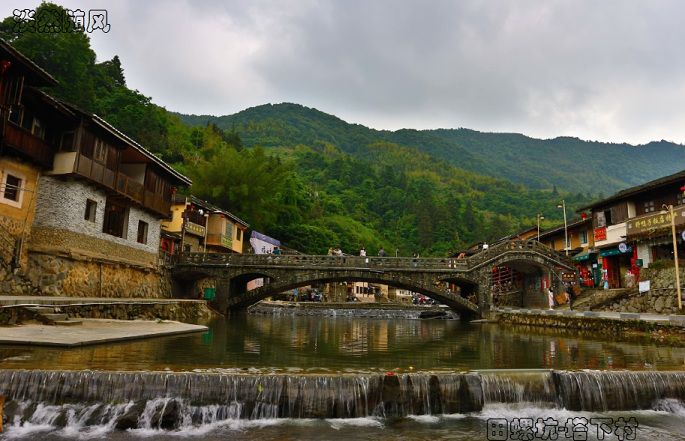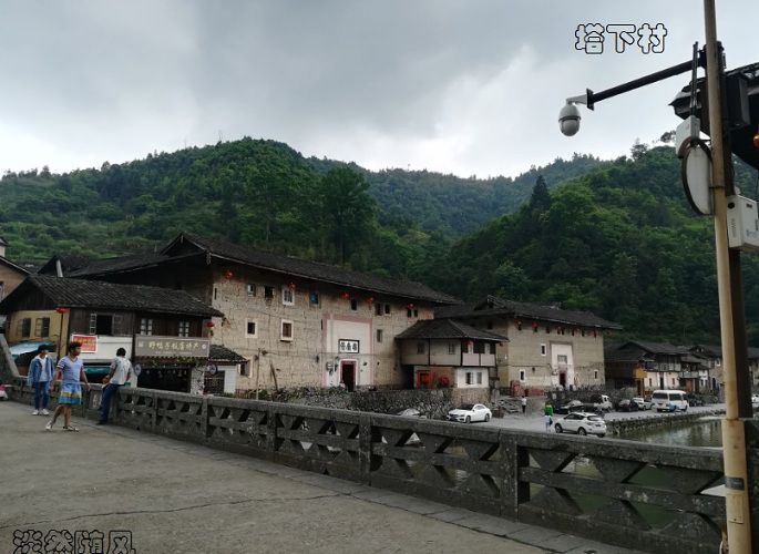 小溪给了塔下村独特的清秀灵气,小桥,流水,浙杭水乡模式单院式土木、砖木结构的吊脚楼,错落有致,布局奇妙,让整个村落显得更加别致。