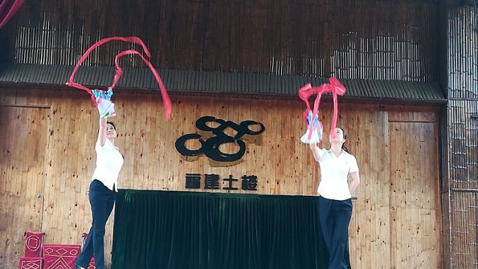 碰上节假日,下午1点45分(不确定是不是每次的时间都一样),云水谣景区内会有民俗文艺表演,我们到的时候刚好是1点30分,想着既然来了,就看看吧,于是坐在那里等,1点45分表演准时开始。南靖提线木偶戏,本来以为要表演很久,谁知全场就15分钟左右。表演嘛,很一般。其实这并不是我第一次看提线木偶戏,之前在一档叫《传承者》的节目中见到过福建木偶戏,那时节目中的表演给我感觉震撼,和现在在这里所看到的相比,那是两种不同的水准。