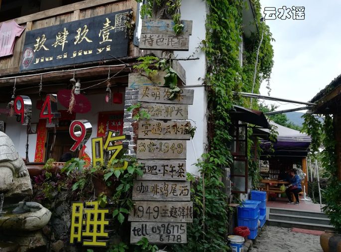 前面说过,我住的是青旅其实是1949主题青旅的分店,总店距离分店很近,就几十米路。离大水车很近。昨天没怎么在大水车那边多停留,于是想着在离开之前再去那边看看,毕竟那里可是整云水谣景区的精华之一,进入这里还是验票的呢,考虑到我们昨天已验过票(在门票上已打了个洞),怕不让我们再过去,于是我们背着行李,从总店那边穿插过去,于是有了这两张1949的相片。