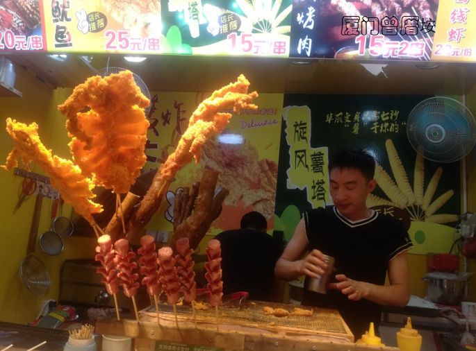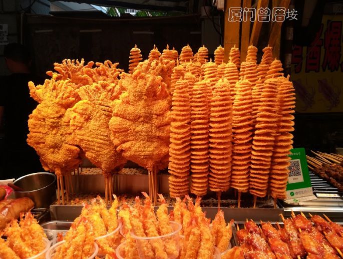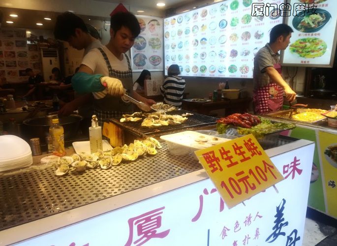 我们在网上订的客栈在曾厝垵里面。曾厝垵其实就是一条村,或者更准确地说是条美食街,像西安的回民街,像阳朔的西街,像成都的宽窄巷子。我们到达曾厝垵差不多是晚上8点左右,早已饿得不行了,所以,刚走进曾厝垵,就马上找了一家人很多的店点菜开吃,吃饱喝足才有力气逛街找客栈。