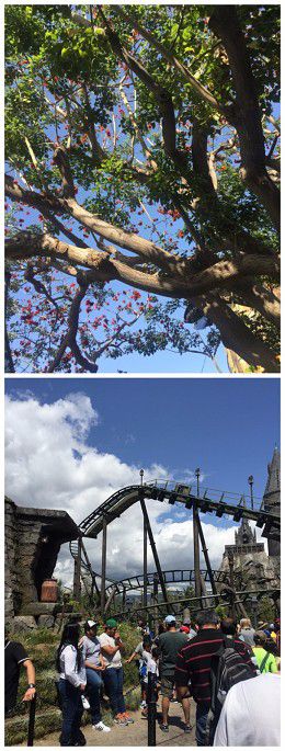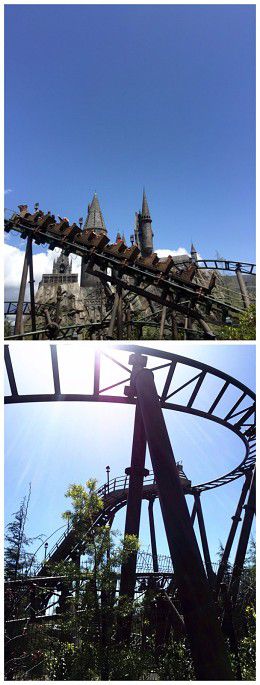 在哈利波特园区玩了Flight of the Hippogriff.就是一个小型的过山车,车厢是模拟藤编的。由于很小型,所以弯度和高度都非常有限,一点都不刺激,坐在车上可以俯看哈利波特园区。