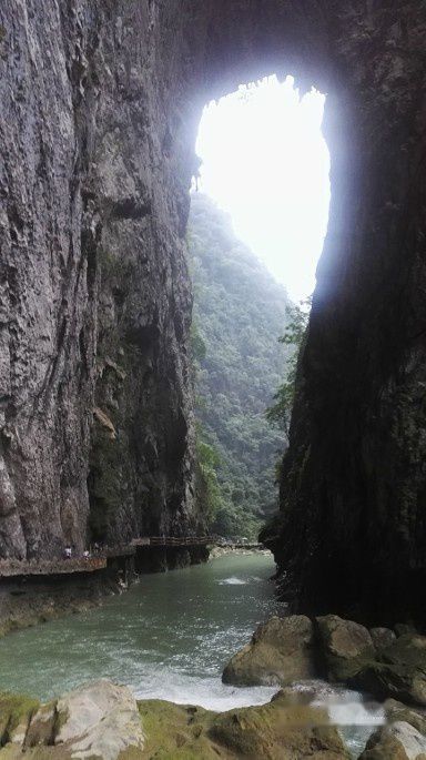 大七孔景区并不大,沿路前行,经过恐怖峡,不久走到天生桥。桥高60米,桥孔宽20米,天然形成,有几分气魄。