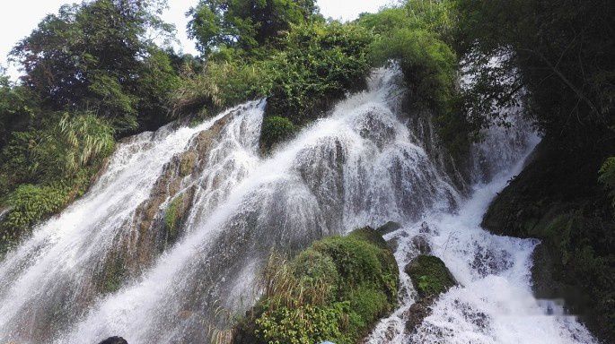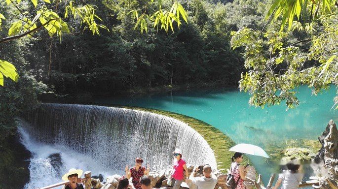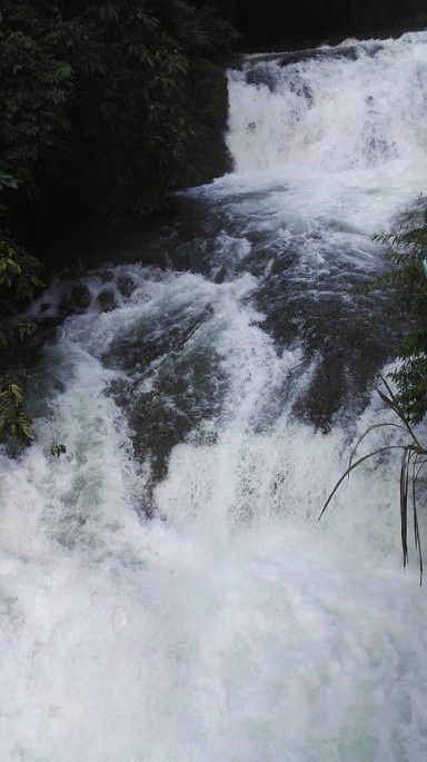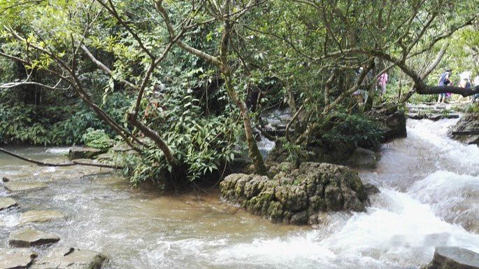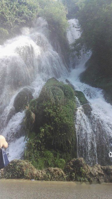 玩过水上森林,乘坐观光车到达下一个景点,翠谷瀑布,相比之下,就黯然失色了,一条小流蜿蜒而下。