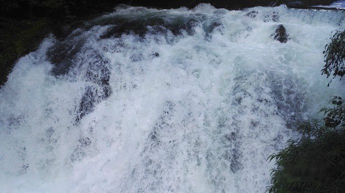 一路前行,瀑布相伴,雷声隆隆,站在路边下望,瀑布翻腾,卷起雪花一片。