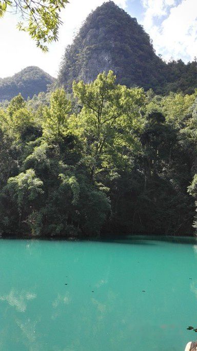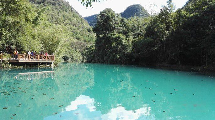 再经过翠谷湿地,乘车前往卧龙潭,也是小七孔的精华景点。一汪碧水,不输九寨,色彩鲜艳,只是水上有些浮游之物,严重影响了视觉效果。