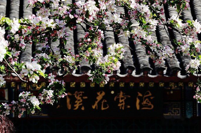 前几天的低温使得很多春花晚开了,所以海棠花溪的海棠也比去年晚开了一些日子。我们一直在关注着花情,看到有人发出片子判断,应该是到了赏花最佳期。于是一早就跑到了那里。