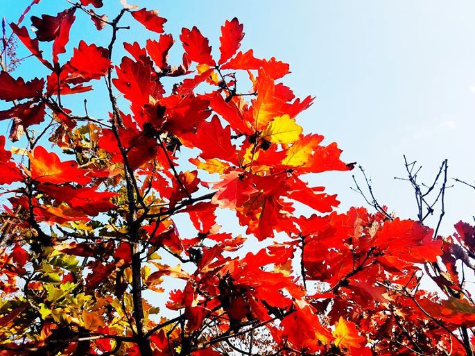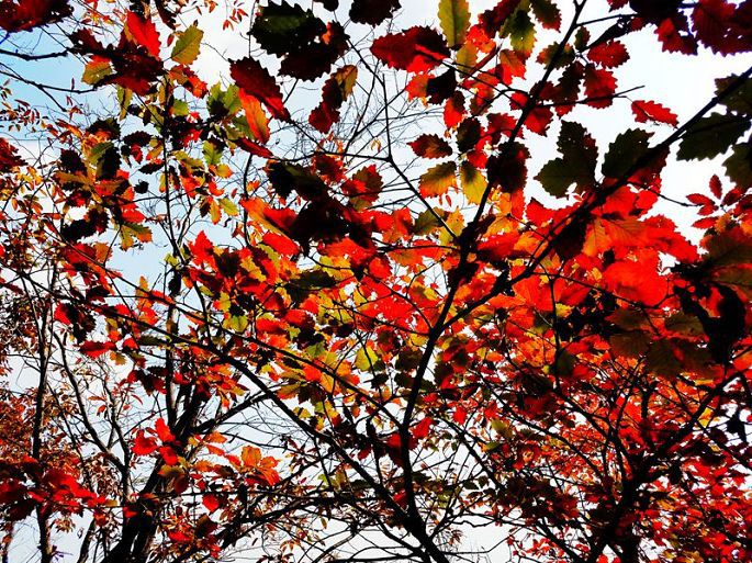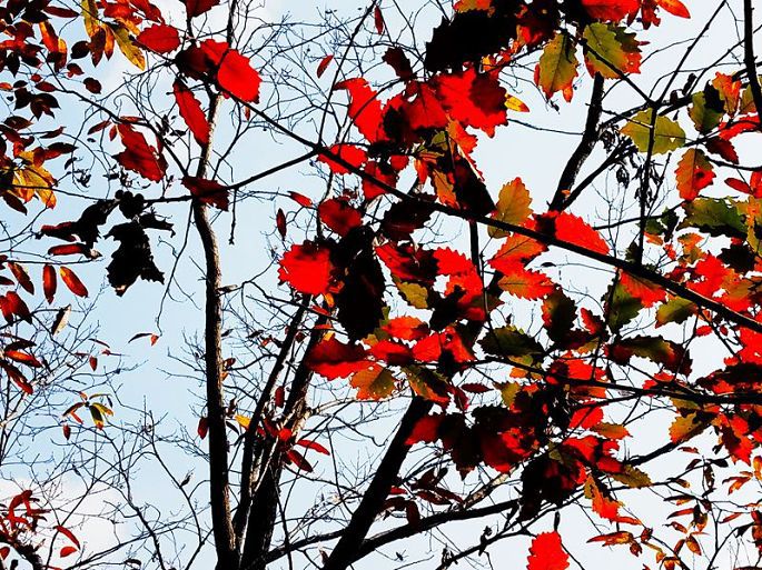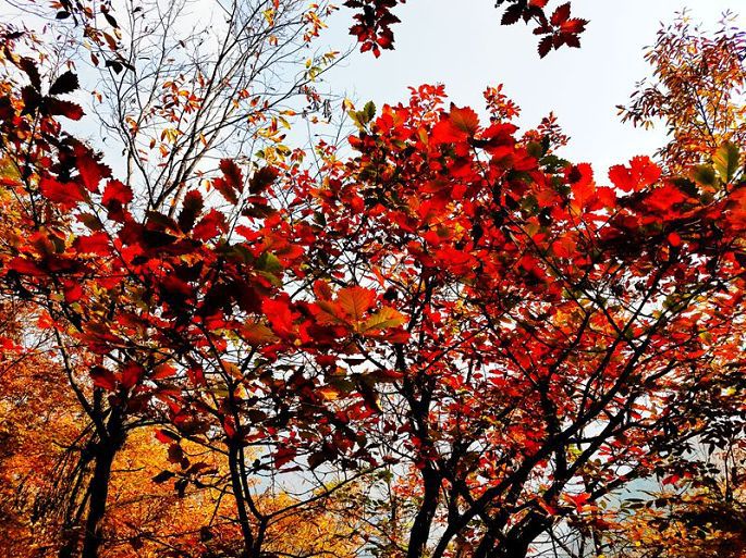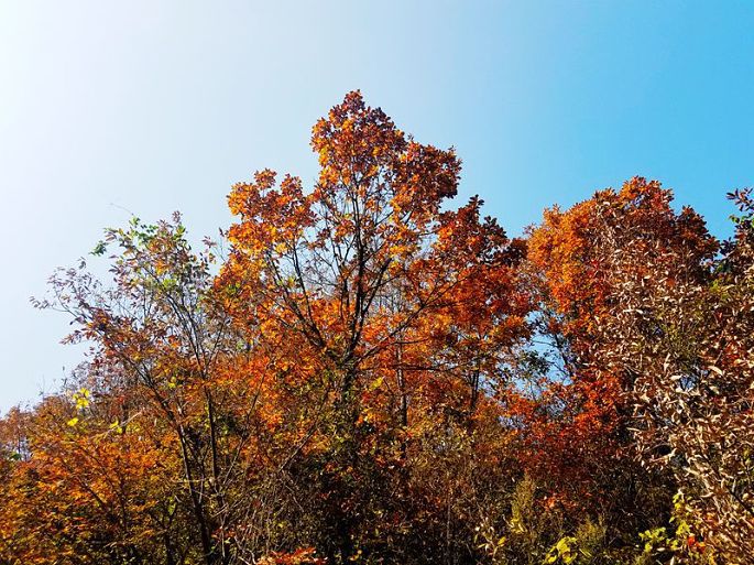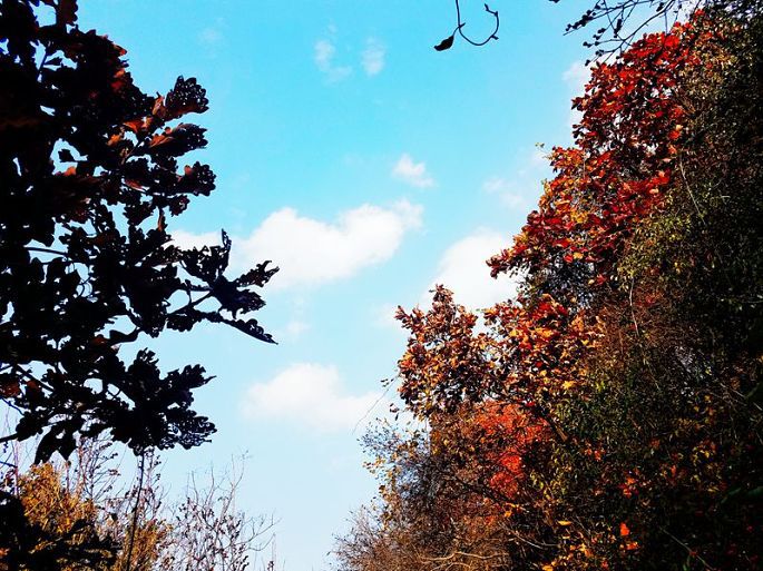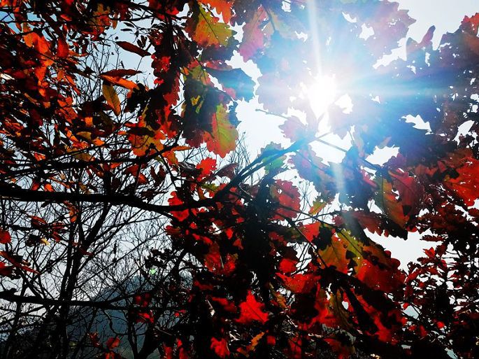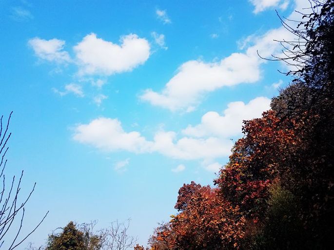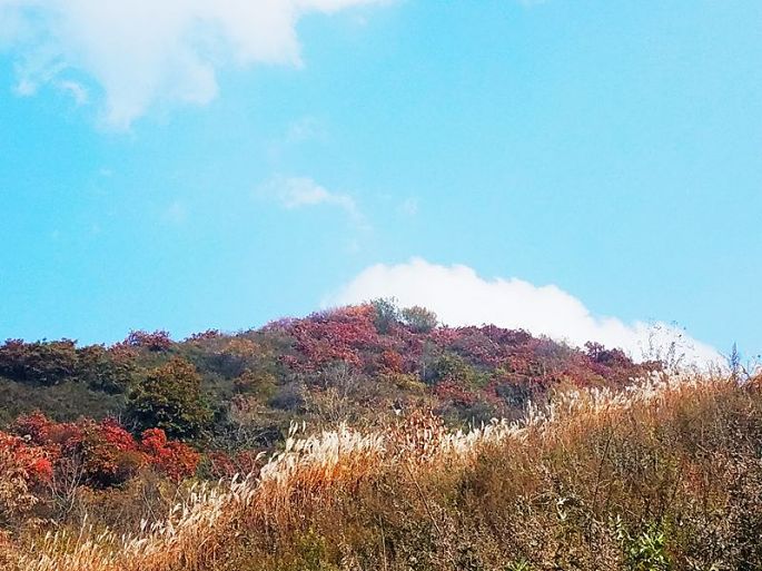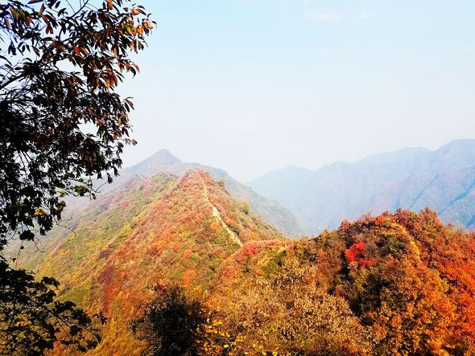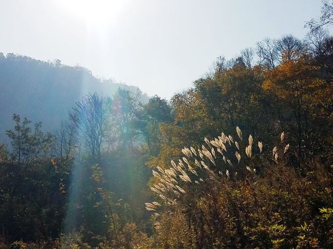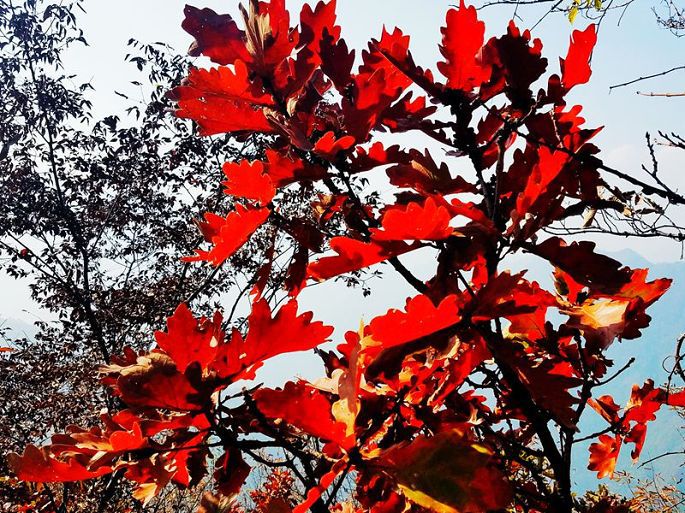 到达最高处的第十二道天门,折向山梁,瞬间便沐浴在暖暖的秋阳之中,直到此时也才能看到满山梁上的红叶和黄叶。