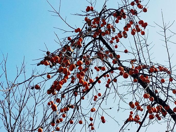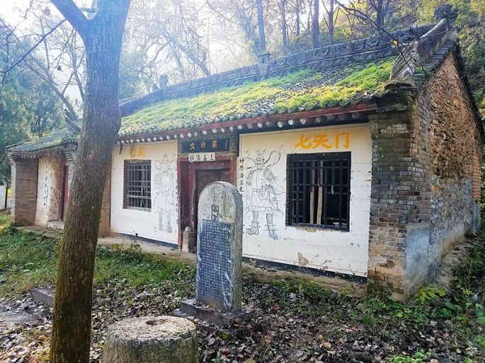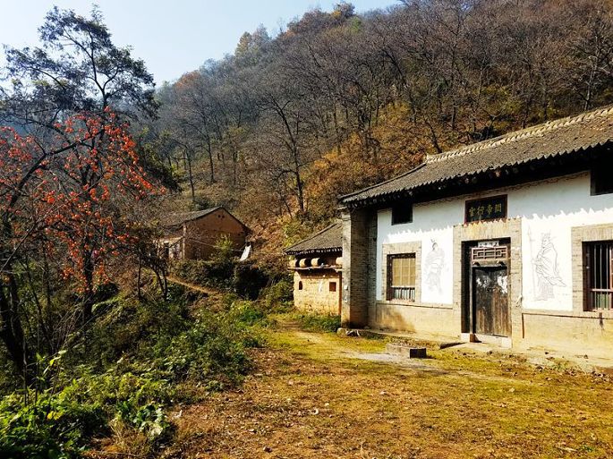 在团标峪口的环山公路上下车,徒步进入团标村,穿过定空寺,就开始一路上山了。从山下到山上,这个季节行走峪内,显得有些阴冷,除了挂满枝头的红柿子,随风轻轻摇曳的芦苇,沿路还会依次经过十二座小庙,这就是所谓的十二天门,每座小庙都很简陋荒芜,没有院落,就一、两幢房舍,墙上有一些壁画,也不知供奉的是哪路尊神?