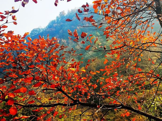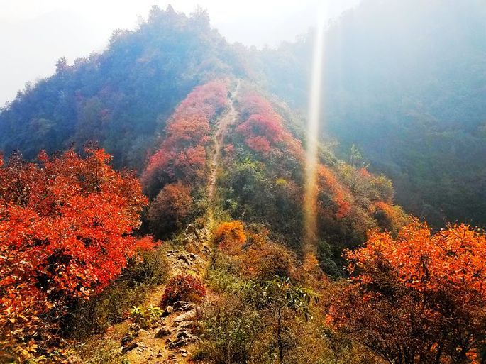 进入11月后,天气一天天变冷,一场雨、一阵风,都可能将山峦美丽的秋装卸掉,山里自此就会变得一派萧疏荒寂。于是,“立冬”后的第二天,11月8日,趁着天气晴好,赶紧进山,随西安“第三极户外”去穿越秦岭团标峪中的十二天门,抓住秋天的尾巴,登高赏那秦岭今年最后的秋色。