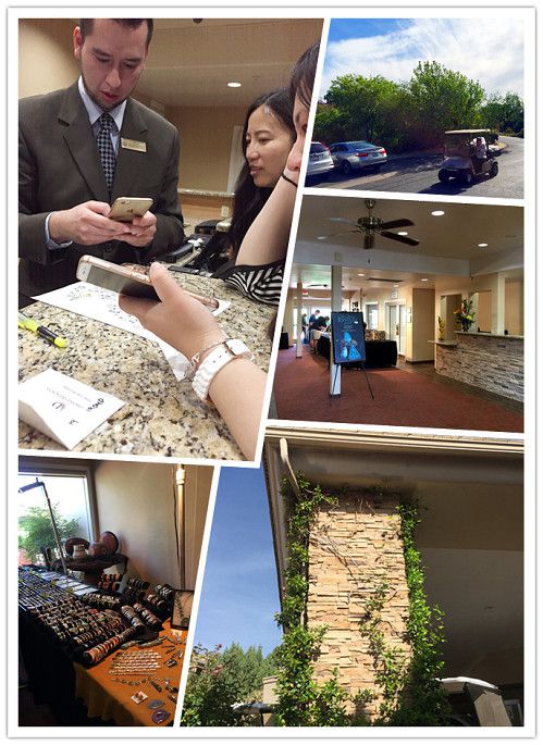 服务台的小哥看到我们用谷歌翻译软件,马上就下一个开用,哈哈,交流无障碍~酒店的大堂也无例外的摆着这里的特产,绿松石饰品。由于别墅太远,服务台都是有小车拉客人和行李。