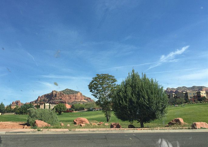从Sedona到我们订的酒店开车大约花了20多分钟,其间还去了一家超市购买明天的食物。这家高尔乎酒店的房间都是别墅,一幢一幢的。我们到达时已是晚间10点多了。