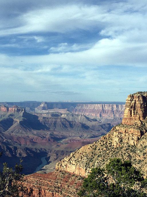 幽深的谷底,隐约可以看到科罗拉多河缓缓流淌,著名的峡谷就是此刻安静流淌在谷底的科罗拉多河用了600万年的光阴一点点切割而成。