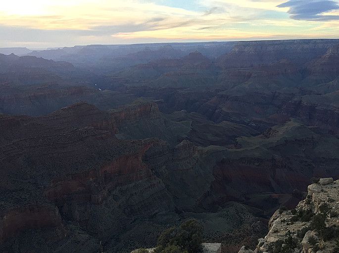 我们在游客中心查到当天日落时间是19:03分,所以看完鹿之后,我们就快快来到最佳观景点,希望见到日落时分大峡谷云蒸霞蔚的壮丽景色。