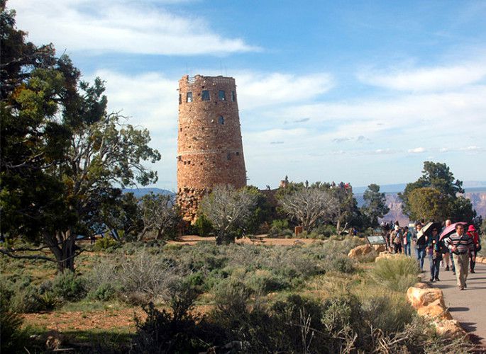 瞭望塔高21米,地处科罗拉多大峡谷南缘的海拔最高地,可以让游客有最广阔的视角欣赏大峡谷。