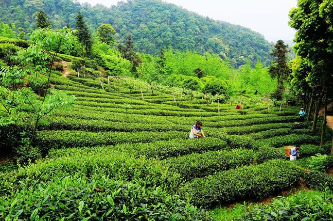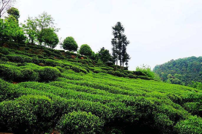 清明后,距四川邛崃平乐古镇约10公里的花楸村的花楸山上,已没有了花的芳影,有的是满山的青青茶树,从山下到山顶,层层叠叠。虽是采茶时节,但今天的茶山上,采茶人并不多,只见有三两个茶农身背背篓,头戴草帽,低头弯腰,两手左右开弓,不停地在茶树上采摘着。