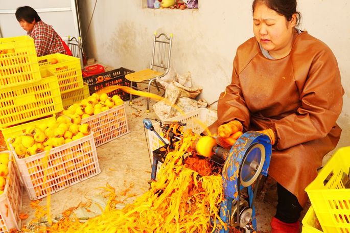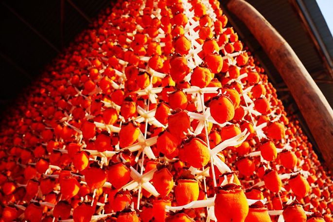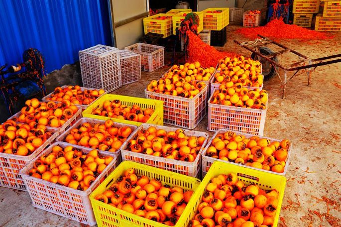 曹村镇地处乔山余脉南麓的缓坡地带,土壤富含植物生长所需的各种营养元素,而且这里昼夜温差大,降雨适中,自然条件得天独厚,是“富平尖柿”的源生区和优生区,也是“富平柿饼”的最优产地,所以人们干脆就把这里叫作“柿子村”了。富平尖柿营养丰富,果肉黏蜜,果纤维短且韧,用这种“富平尖柿”加工的“富平柿饼”,以其“糯、软、香、甜”的极佳口感享誉古今,是富平传统地道的名产。