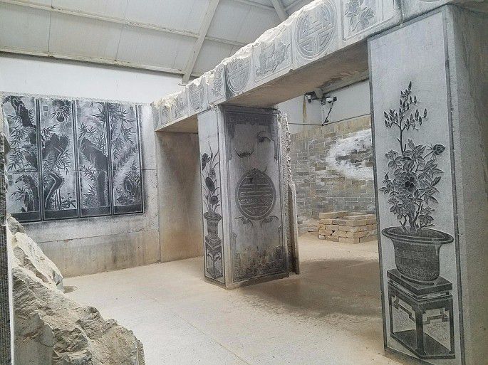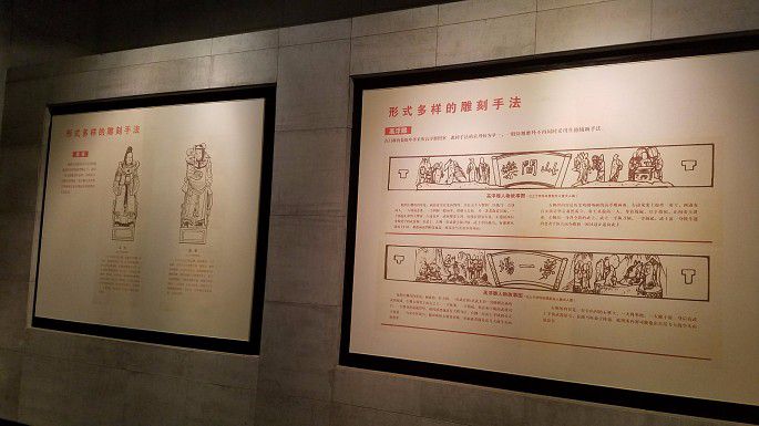 与稷山县马村砖雕墓不同,这里是石雕艺术的荟萃,雕刻手法应有尽有,技艺精湛娴熟,内容涵盖山水、人物、动物、花草等图案及文字楹联,淋漓展现墓主人生前身后的多彩生活和国人视死如生的古老观念。如1号墓石柱上楣额雕刻《二十四孝》中戏彩娱亲的故事,中间的老翁(老莱子)手舞足蹈,左右各有一对老年夫妇对座观看,身旁男仆、侍女、儿童相伴;3号墓南壁屏风刻松柏双鹤图,北壁刻红叶双鹿图,院落和庭堂上均为花鸟、人物、山水楼阁画;4号墓中庭迎面一幅《天官赐福图》,天官一手抱如意,一手扶腰圈,旁边站着一名手持插牡丹花花瓶的童子.....