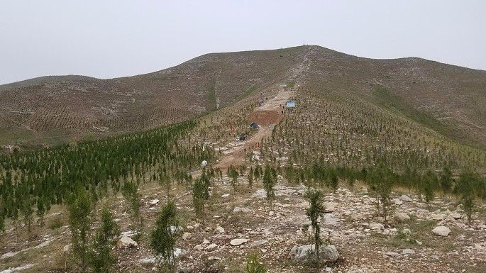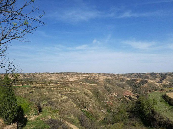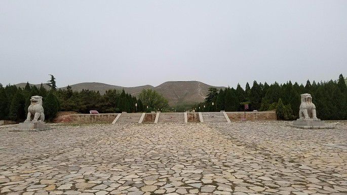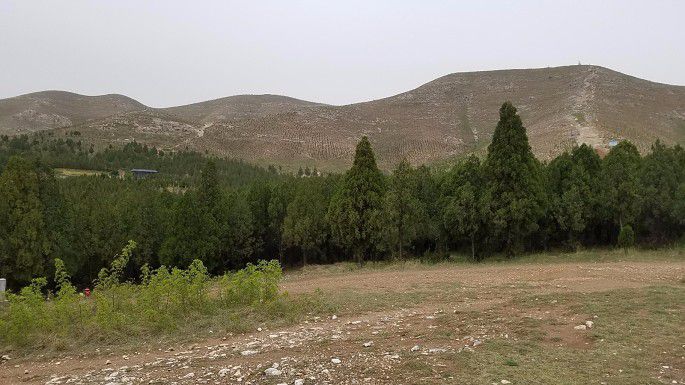 墓碑后山脚下侧柏葱郁,山却草木稀而小,山腰有人在整修什么。卖东西老汉手指向山,说陵墓口就在那道梁上。爬上一段,到一山包上,有见几个本地来参观的人在休息。回头望,关中大地茫茫一片......