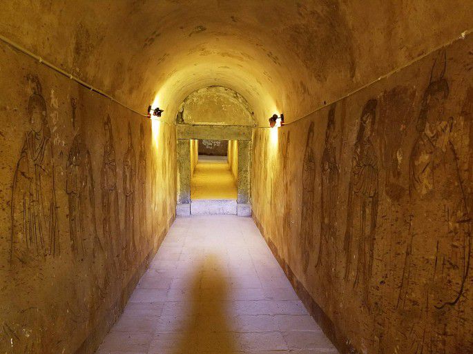 后逐一参观开放的五个墓——仅是偌大墓地小小一部分,可谓是大开眼界。墓葬结构大体相同,多为由墓道、墓门、院落、庭堂、耳室、墓室等组成的庭院式结构。墓葬虽有不同程度破坏,但整体保存还算好。