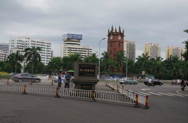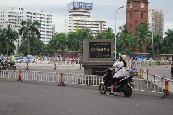 海口骑楼老街,不远处就是钟楼