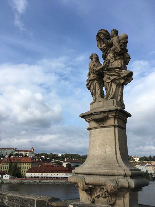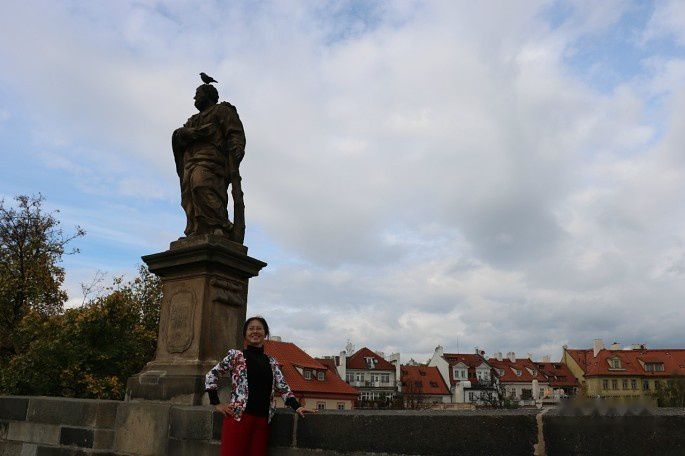 这一摸,好运来了。阳光冲破笼罩在查理桥上的乌云,神秘而古老的大桥顿时沐浴在暖暖的金色中,河两岸上百栋古建筑十分耀眼,靓丽地呈现在我的眼前。