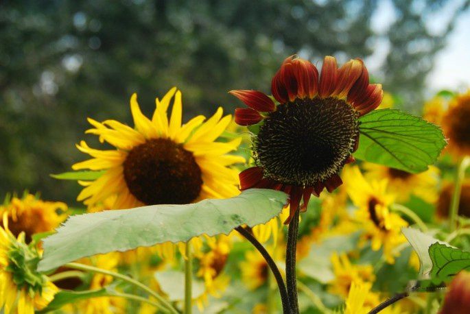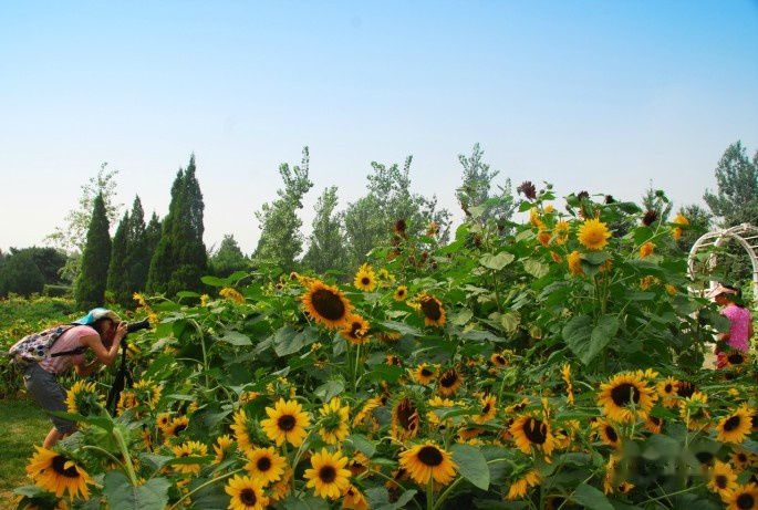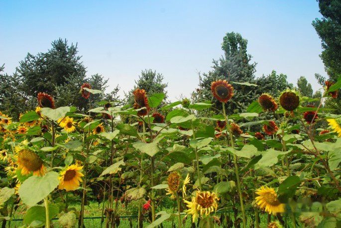 记得2010年植物园第一次种植向日葵是好大好大的一片,品种那叫一个多,我也是在植物园第一次知道有观赏向日葵。那时向日葵的下面有小牌牌,让人们认识它。那是植物园向日葵最繁盛的一次,此后这几年向日葵种植的面积越来越少,品种也少了,常常找不到小牌牌。今年去看向日葵,只有小小的一片。