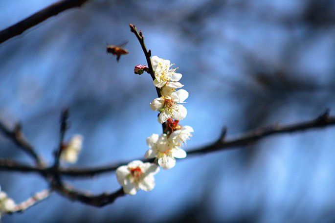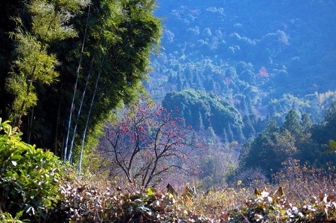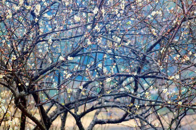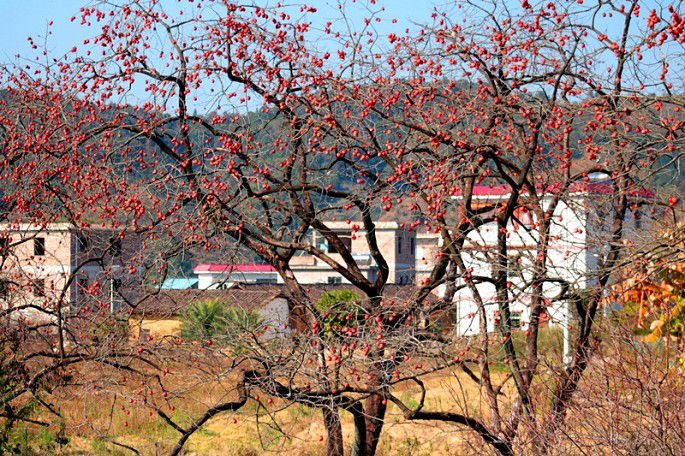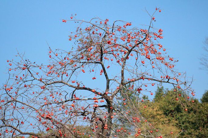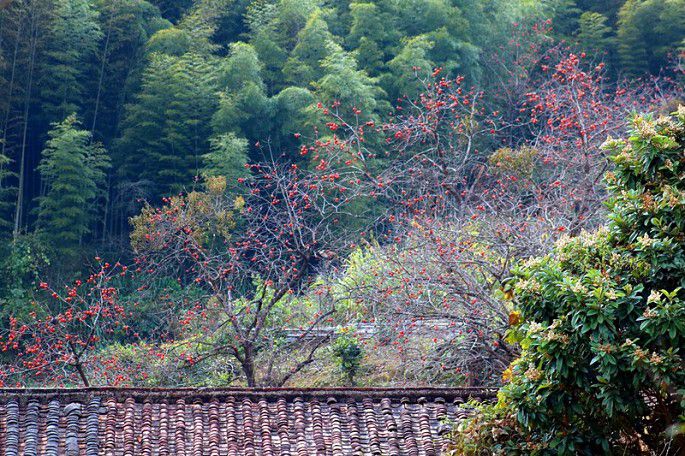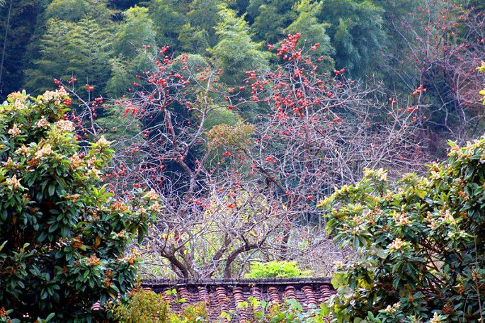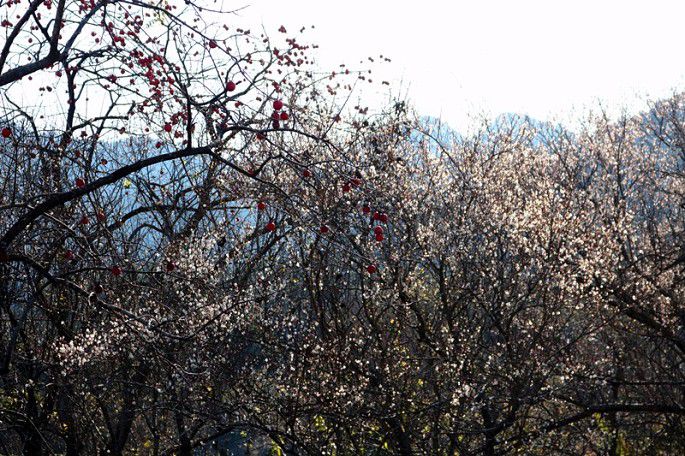 有些和梅林夹种一起,白花配红果,正宗的梅花间柿子。