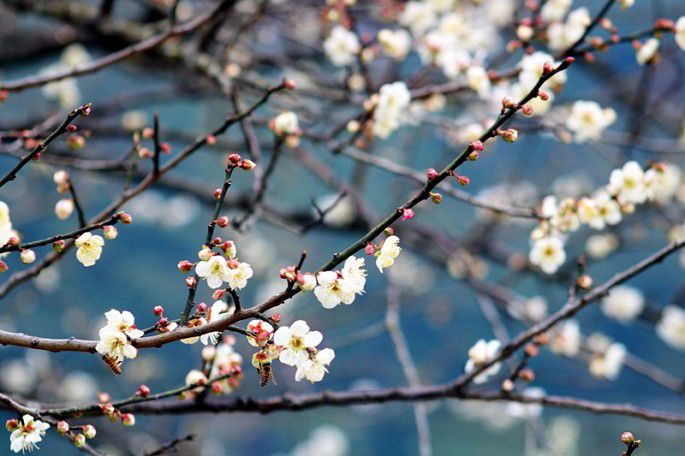 9点整装出发,自由行不用太紧张,11点到达从化溪头村的路上,今年暖冬,梅花未旺,但蓝天绿水,山色也是蓝的,拍的照骗也是蓝调子,可以!