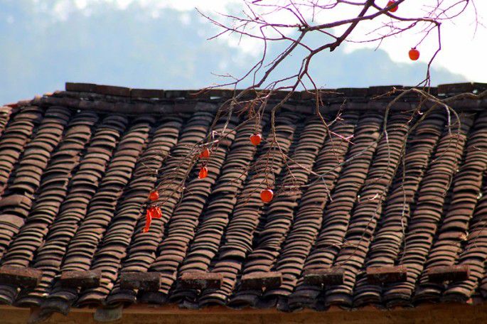 回程路上又发现几株柿子树,硕果满枝,甚觉好看,钻入村中,窜上跳下,也只找到些些角度摄了几片。