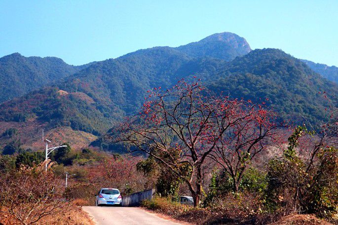 这次回程走吕田镇,惊喜来了,路上三角枫黄中变红,不绝于眼,在阳光下金光闪闪,热热闹闹。