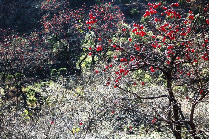 午饭后休息好,查下地图,发现桂峰山就在直前七公里处,那么就去看看吧,谁知这里不得了,柿子树一大片,算来怕有几千亩,挂满硕果,十分壮观。
