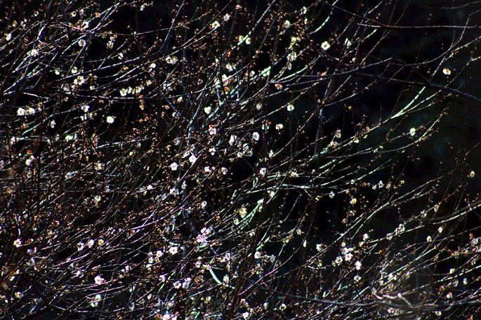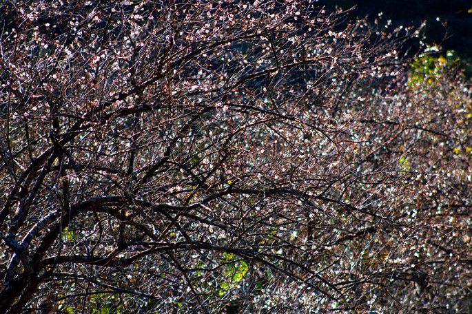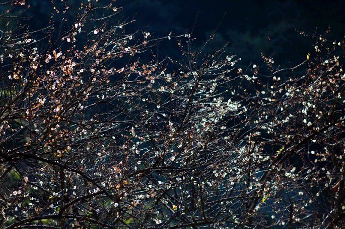 也有一大片老梅林花开正旺,在阳光下闪闪生辉。