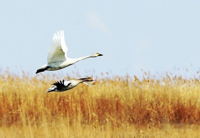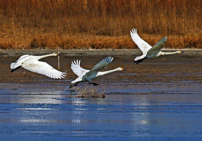 我们在当地老乡指引下到了水库的边上,拍了一些小天鹅飞版,与大家分享。