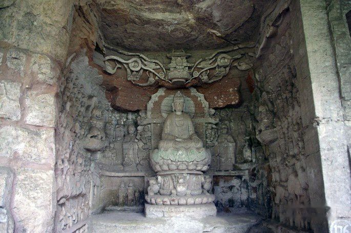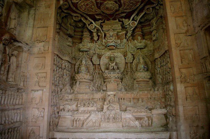 北山摩崖造像长约三百多米,最初由唐代昌州刺史韦君靖开凿于公元982年,经五代至两宋,历时250多年,主要为世俗信徒出资雕刻,题材以佛教密宗为多数,是中国晚期石窟艺术中的优秀代表。