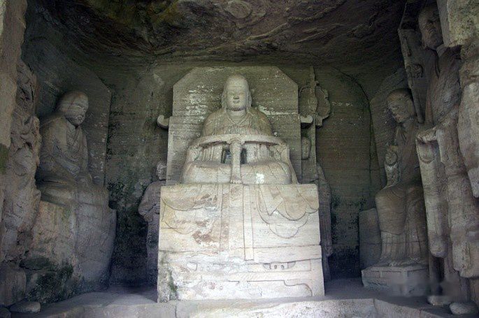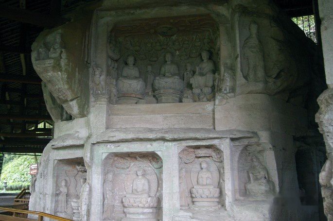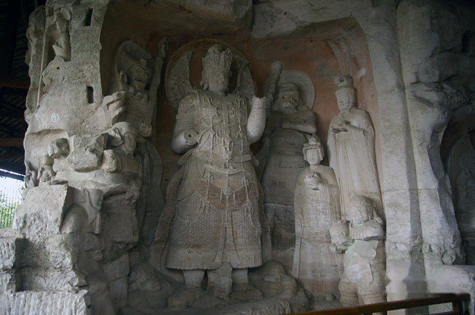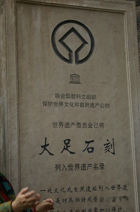 大足石刻是唐宋时期的宗教摩崖石刻,与敦煌莫高窟、云冈石窟、龙门石窟及麦积山石窟齐名。1999年的联合国教科文组织世界遗产委员会表决通过,将大足石刻中的北山、宝顶山、南山、石篆山、石门山五处摩崖造像,正式列入世界文化遗产。大足石刻以佛教题材为主,儒、道教造像并陈,尤以北山摩崖造像和宝顶山摩崖造像最为著名。