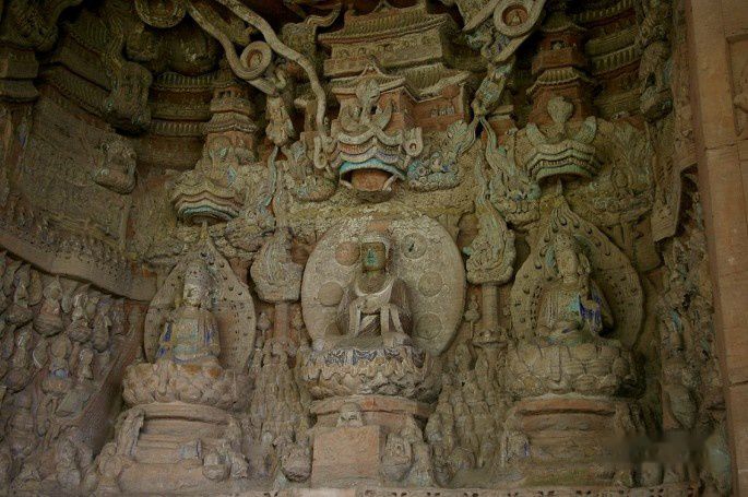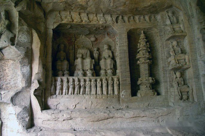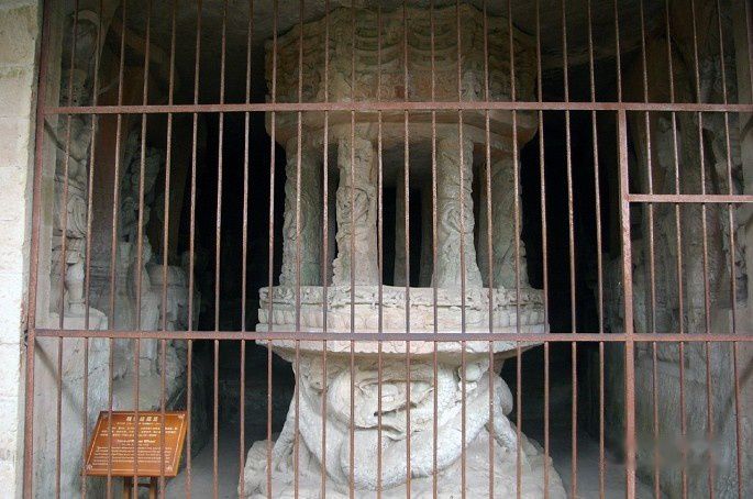 第136号转轮经藏窟因其造像个性鲜明形神皆备,精工典雅保存完好,被誉为“中国石窟艺术皇冠上的一颗明珠”。