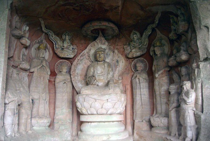 其中晚唐造像端庄丰满,衣薄纹细,具有盛唐遗风。如第5号毗沙门天王龛、
