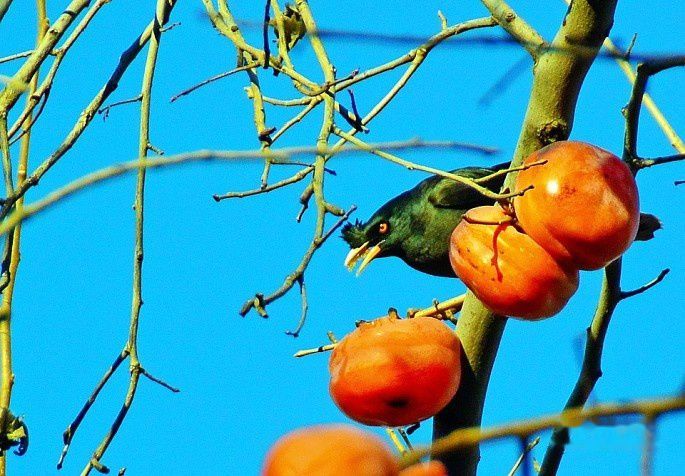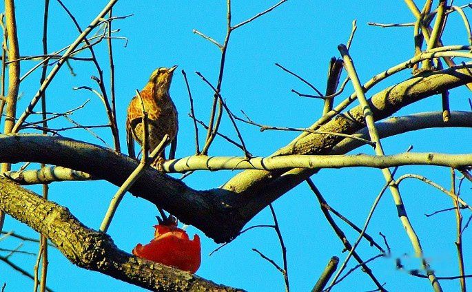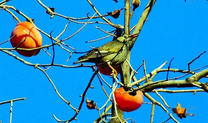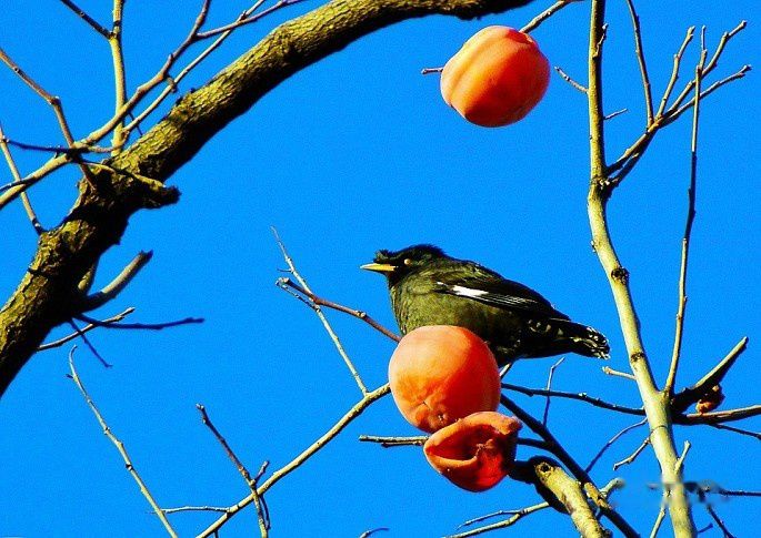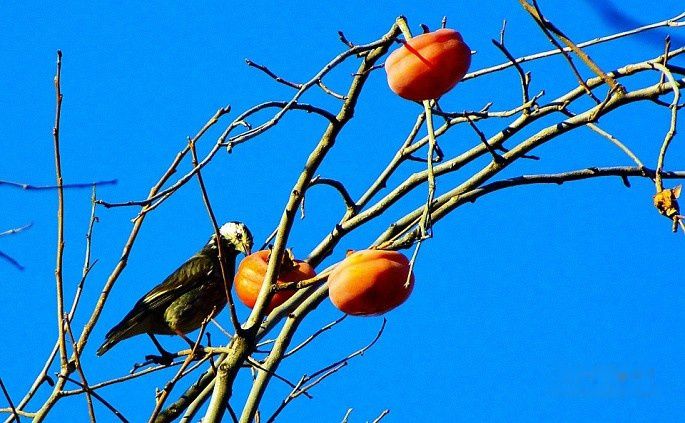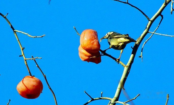 景山的柿子挂满枝头,又到了各种鸟儿争相吃柿子的时节,11月下旬我们去了那里,拍到了多种鸟儿吃柿子的镜头。