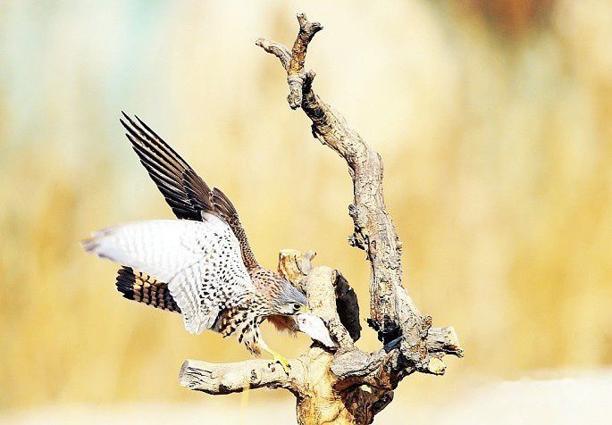 天寒地冻,百十号人坚持在野地里苦等,坚持不住的陆续撤离了,我是铁了心的,不等到绝不回还。功夫不负有心人,在苦等5个小时后,红隼终于出来了,也下来抓耗子了!而且前后抓了两次,我很是高兴,因为基本上全都拍到了!而且成片率挺高,基本上都可以看。先后拍了数百张,就选出十几张与大家分享吧。