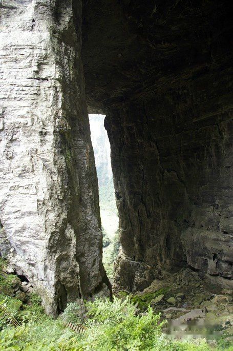 在景区下车后,乘垂直观光电梯下行道谷底,沿山道步行,路过天生桥的其中一个桥孔,看前人游记,从此桥孔可以走到桥另一边的观景台,但怎么也找不到下去的路口。