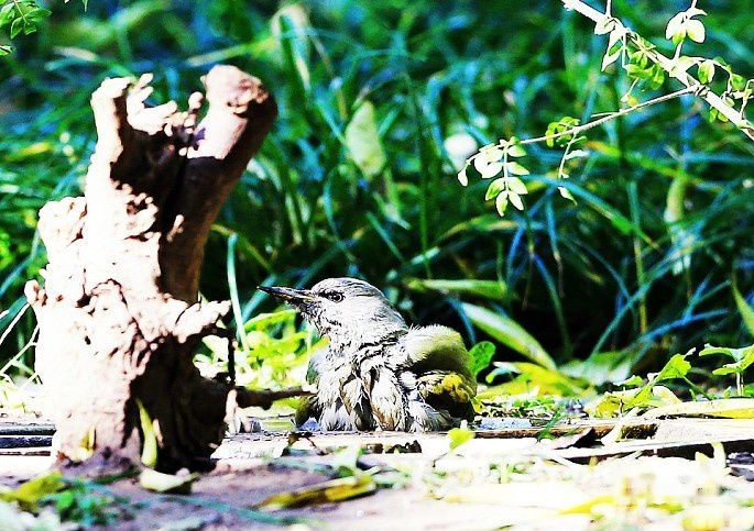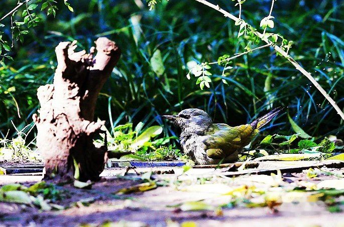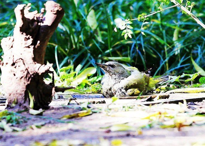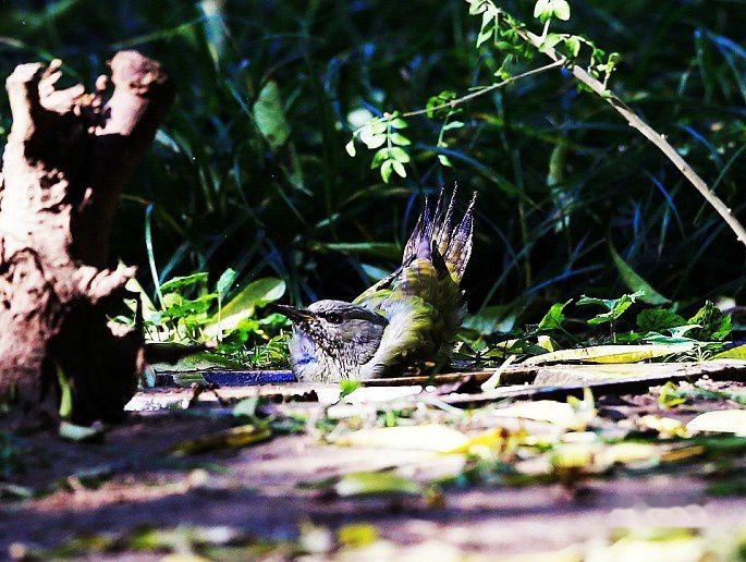 那天在天坛苗圃拍完虎斑地鸫后,收拾装备打算回家。在走到苗圃中间位置时,看到另一个喝水点有一只灰头绿啄木鸟在洗澡,立即停住脚步,拿出装备,蹲着抓拍了几梭子,还能看,发来与大家共赏。