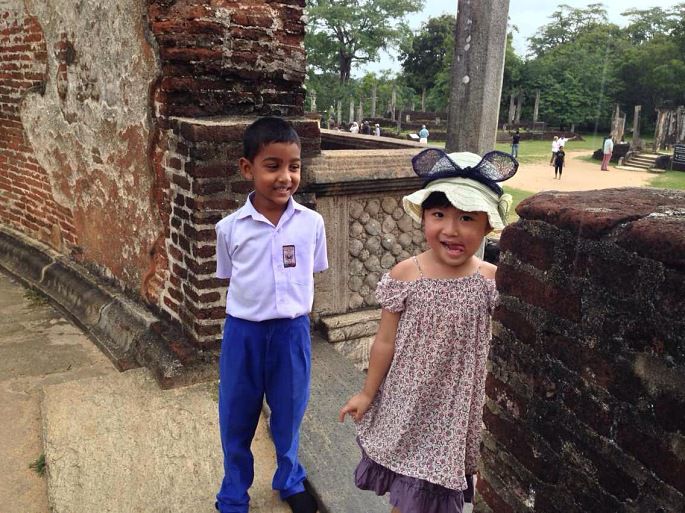 斯里兰卡的孩子都估摸着对外国的小朋友很好奇,总是会主动上来吃吃小APPLE的小豆腐,这个小男生属于遇到的最害羞的一个,于是她们互相害羞着。