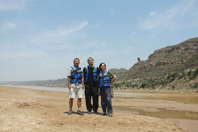 今年7月儿子回国培训3天,顺便请了一周假。我们一家三口利用他的假期自驾去晋陕交界的黄河之滨。在碛口乘船游完黄河画廊,让船工给我们在黄河碛(河中沙滩)上照了今年的全家福