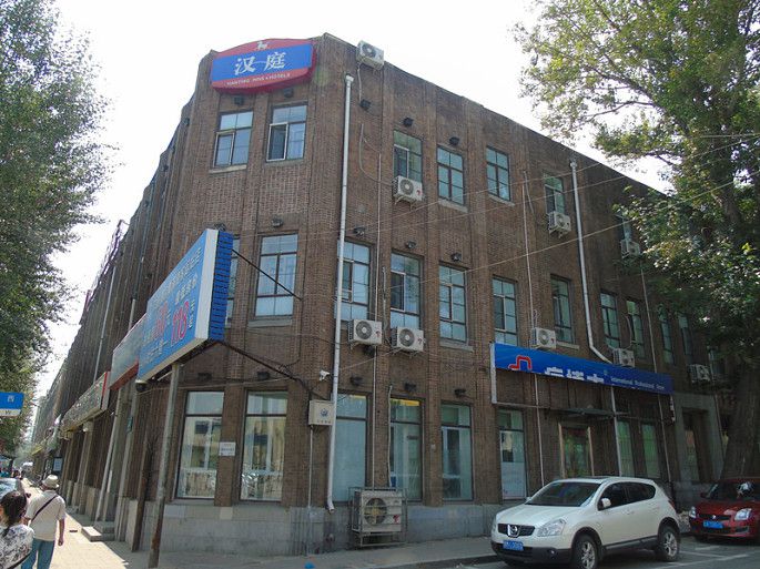 书店旁边是汉庭宾馆。原是新京国都旅馆,1933年建成,砖混结构,原为二层,后加高至三层,经理是藤原义雄。伪满时期,千叶修一商店和大阪商船会社事务所也曾设在此楼南部。解放后,此楼与南边的“榊谷大厦”一道,成为省政府的“第二招待所”,此楼俗称“省二所北楼”。