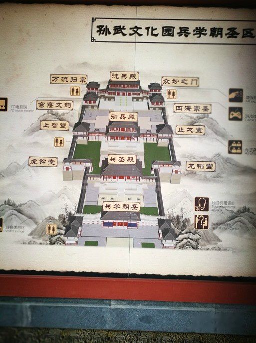 建筑浓缩春秋文化风格,围绕《孙子兵法》军事题材,以兵圣殿—宗脉,