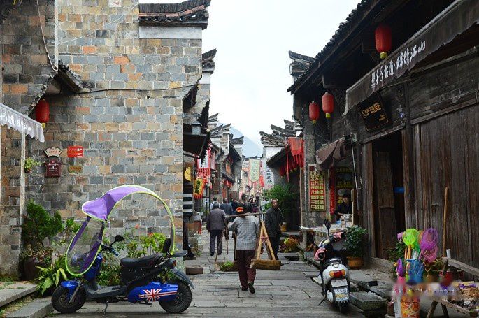 一条街道与小溪并行,自北至南曲折蜿蜒长达1公里。两旁多为二层楼店铺作坊,基本保持了19世纪集镇的风貌。