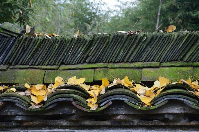 小镇里的秋天,瓦片上的银杏